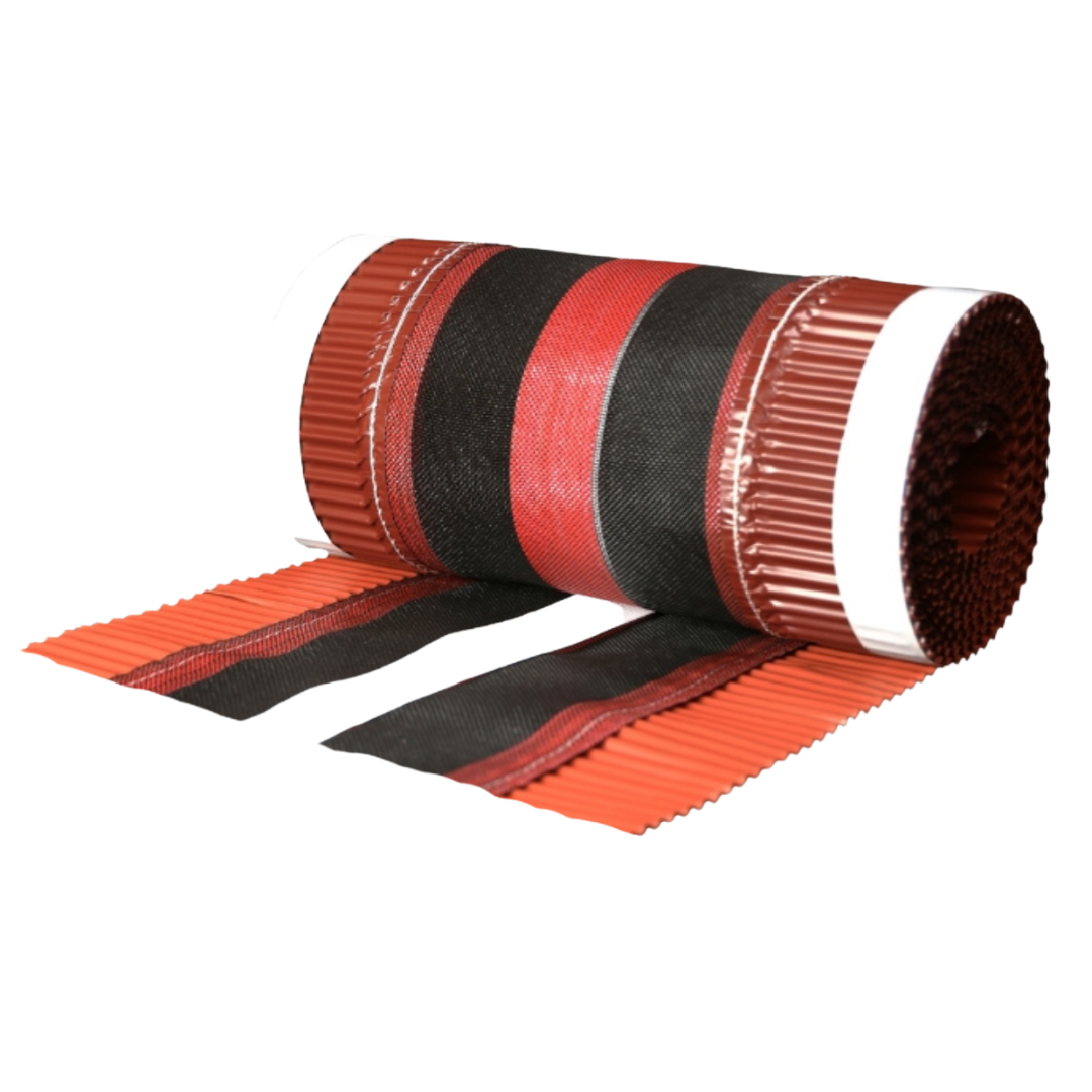 First- und Gratlüftungsrolle aus hochwertigem Polypropylen-Gewebe mit Kupferschürzen und hochwertigen Butylklebestreifen zur zuverlässigen Befestigung an nahezu allen Deckmaterialien. Die durchgängige Plissierung sorgt für einen hohen Streckfaktor. Das weiche Kupfermaterial und der Gewebemittelteil ermöglichen optimale Flexibilität bei der Verlegung und eine problemlose Anpassung an die Deckbreite und das Deckmaterial.