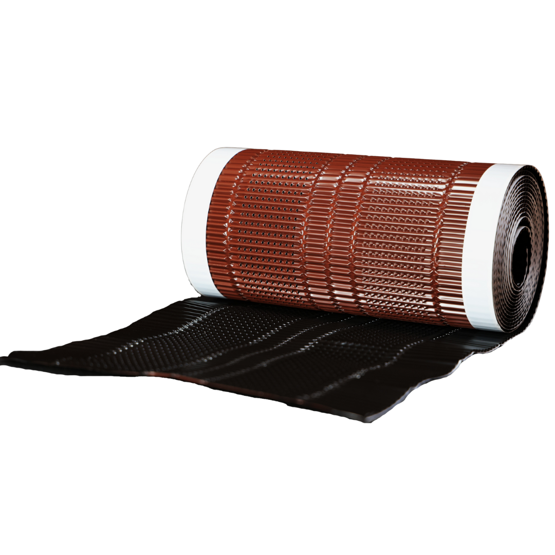 First- und Gratlüftungsrolle aus hochwertigem Polypropylen-Gitternetzgewebe mit Aluminiumschürzen und hochwertigen Butylklebestreifen zur zuverlässigen Befestigung an nahezu allen Deckmaterialien. Die durchgängige Plissierung sorgt für einen hohen Streckfaktor. Der Gewebeanteil ermöglicht optimale Flexibilität bei der Verlegung und eine problemlose Anpassung an die Deckbreite.